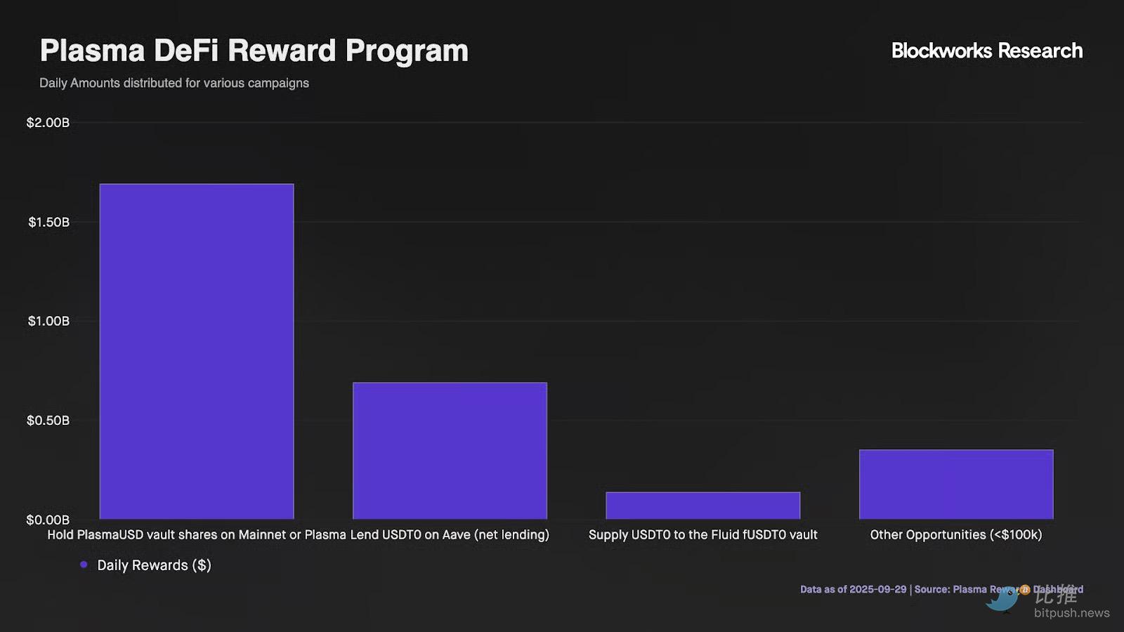 据估算,Plasma 当前的激励发放规模约为 每日 280 万美元,资金主要来自初期代币分发与合作协议激励池。