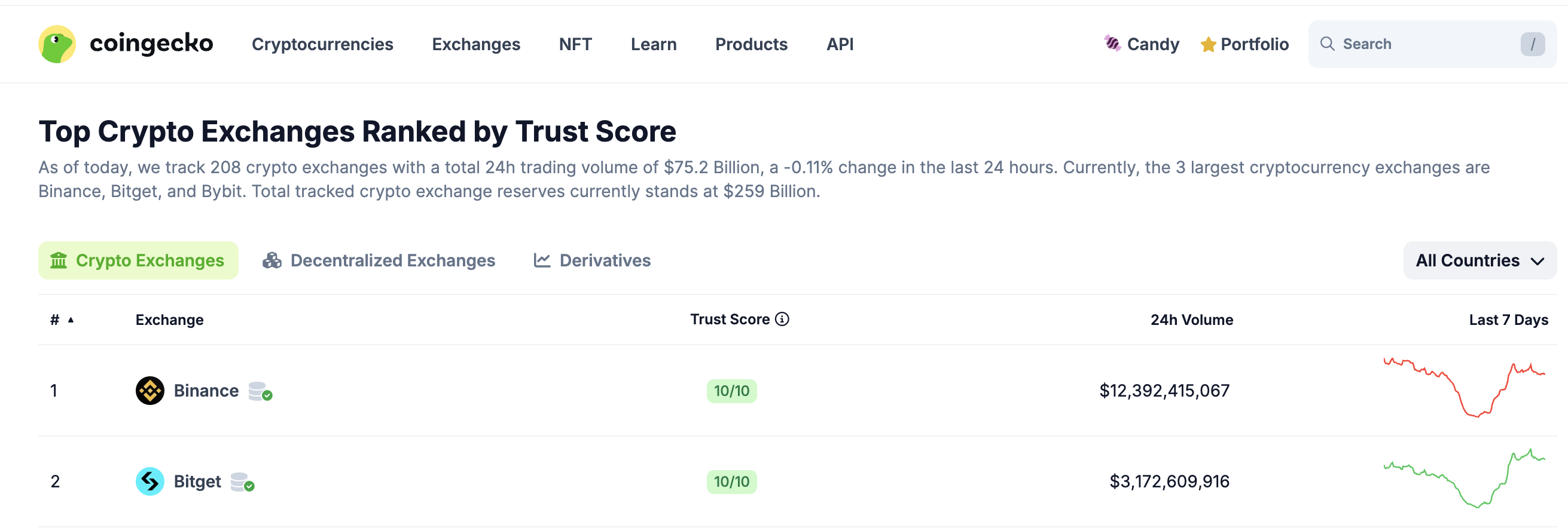 截至 2025 年 7 月 2 日,Coingecko 数据显示,Bitget 的合约和现货交易量分别位居全球第三和第二位。