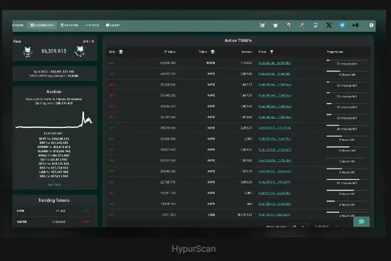 Hype 生态的区块浏览器,统计协议收入、即时交易、拍卖资讯;当前最主流的 Hyper 生态数据查询站,在官方发布的 2024 In review 中有被介绍到