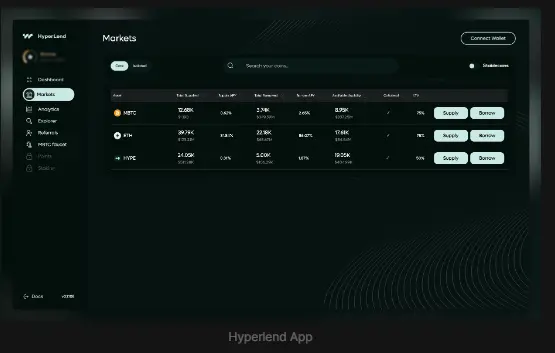 Hype 生态首个原生借贷协议,除了基础功能,特色是支援 HLP Vault 作为抵押品,解锁杠杆收益的机会。用户可以将 HLP 作为抵押品 Supply,借出其它稳定币再存回 HLP Vault 循环去杠杆收益,目前测试网可参与