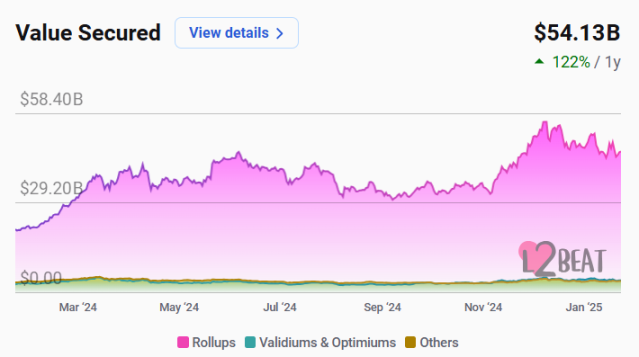 各 L2 自推出后,其代币表现平平,虽然其总 TVL 已经超 540 亿美元,但自去年 3 月以来,并无特别显著增长。