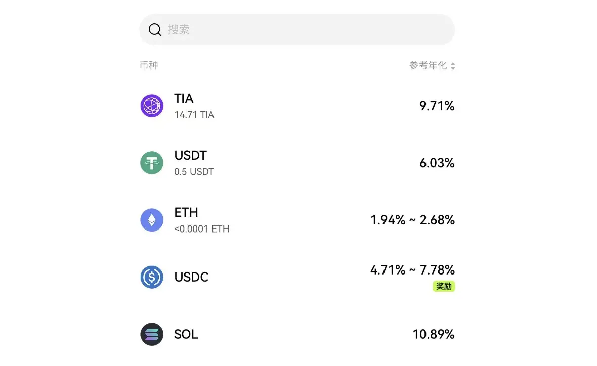 比如,当前OKX已上线SOL质押活动,在Solana网络质押SOL,即可获得1:1 OKSOL,当前参考年化收益达10.89%。此外,质押ETH可享高达2%年化APR,获得1:1 BETH,每日赚取奖励,同时保持更灵活的流动性。