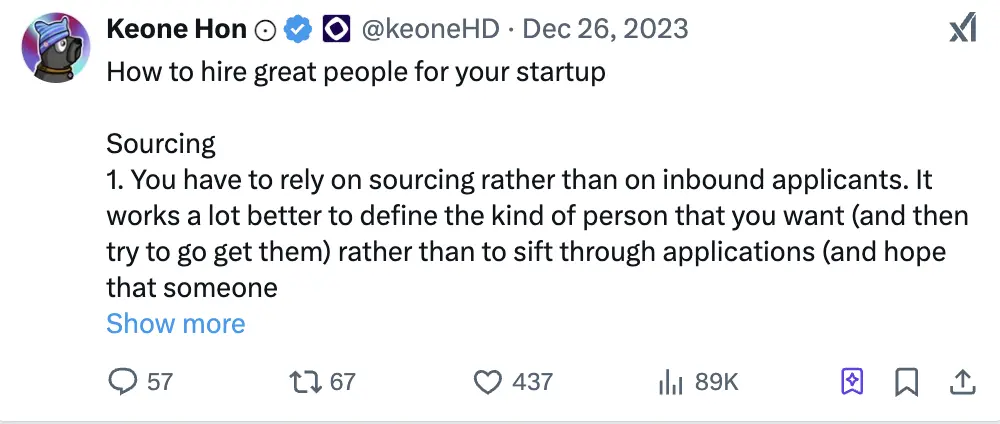 当然——我不能总是发一些与项目无关的内容。我需要将内容与我的项目联系起来,因为我有增长目标要达成,公司也需要维持生存。否则,我的团队和投资者会怀疑我每天到底在干什么。