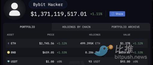 黑客地址的动向成为关注焦点。链上数据显示,Bybit 黑客地址目前已成为全球第 14 大 ETH 持有者,持有约 0.42% 的以太坊总供应量,超过了 Fidelity、V 神 (Vitalik Buterin),甚至是以太坊基金会持有量的2倍以上。