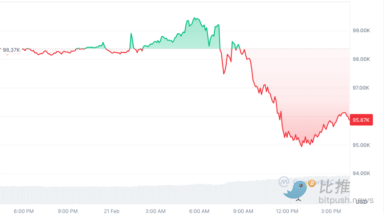 消息传出后,比特币应声下跌,一度跌破 95,000 美元关口;本就疲软的以太坊短线暴跌 5%至 2,615 美元,截至发稿时回升至 2,666 美元的水平。
