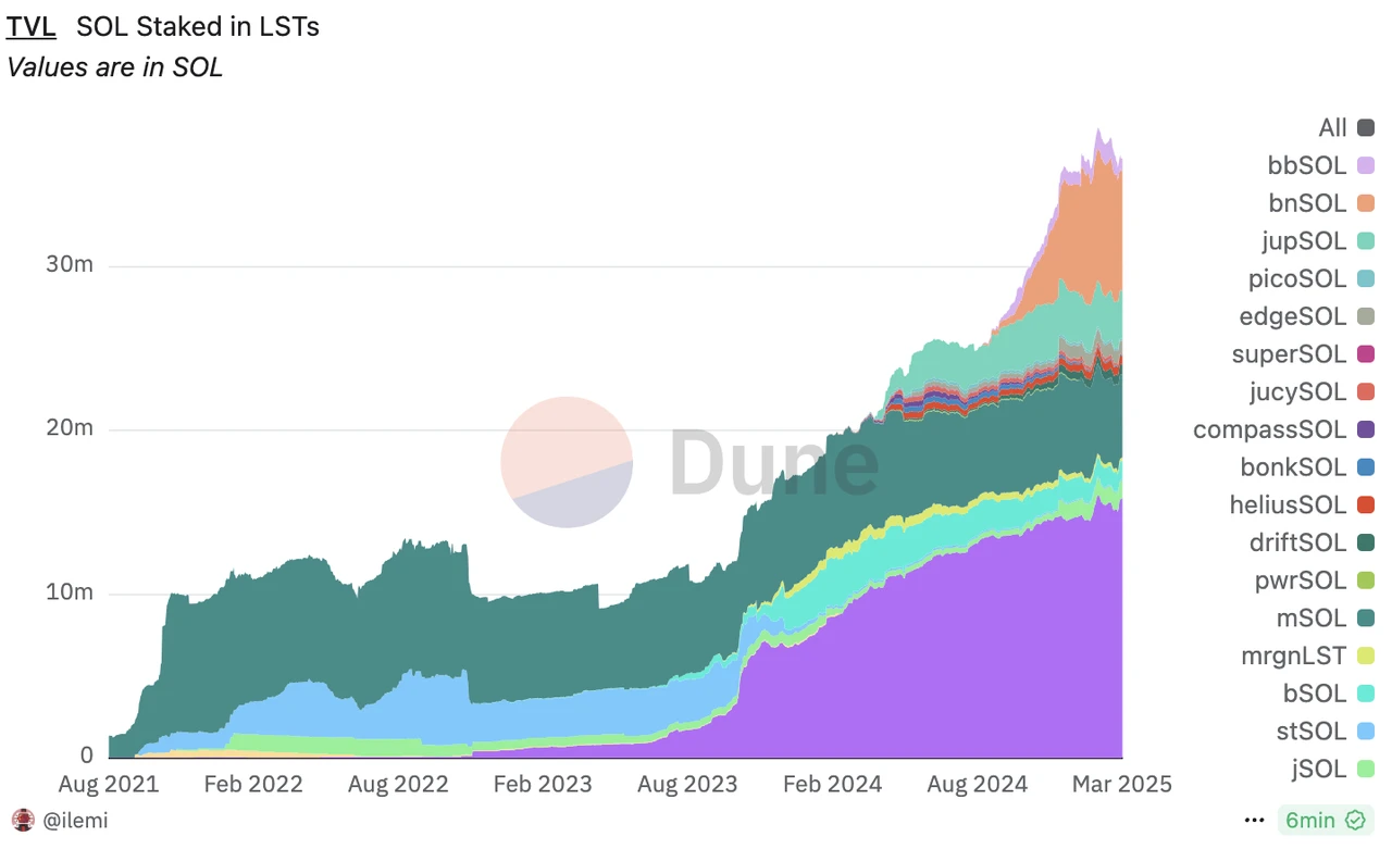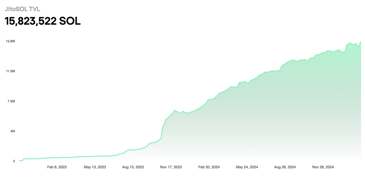 目前,Jito 质押资产规模(流动性质押)超过 25 亿美金