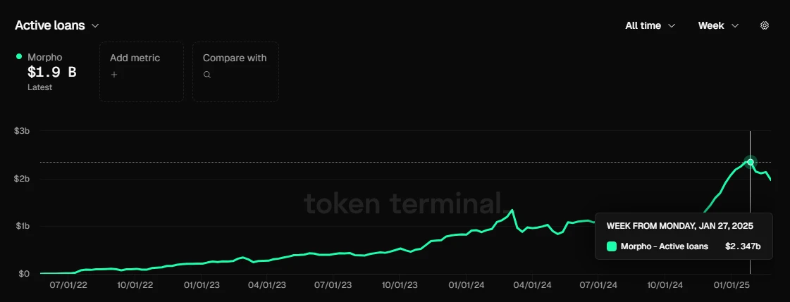 Morpho 的贷款规模,数据来源:Tokenterminal