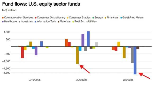 行业基金出现了45亿美元的资金外流,其中仅技术行业基金就外流了19亿美元。