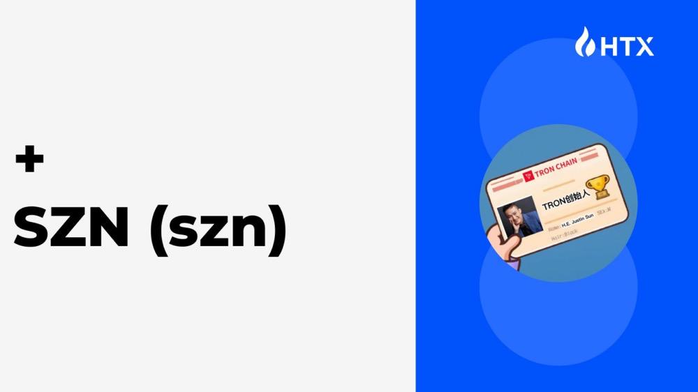 据悉,活动启动仅三小时,火币HTX迅速捕捉、锁定优质资产,宣布上线SZN(szn),使之成为首个受益于此次优惠举措的SunPump Meme代币。SZN的形象灵感来源于孙宇晨发布的推文内容“Tron meme szn ”,其迅速上线火币不仅体现了SunPump平台的高度活跃性和用户对Meme币的热情,也标志着火币与波场生态的深度合作迈出了重要一步。
