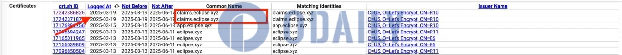 3 月 21 日,社区用户 发现 ,Eclipse 疑似已注册“claim.eclipse.xyz”的子域名,社区猜测此举或意味着即将进行空投。