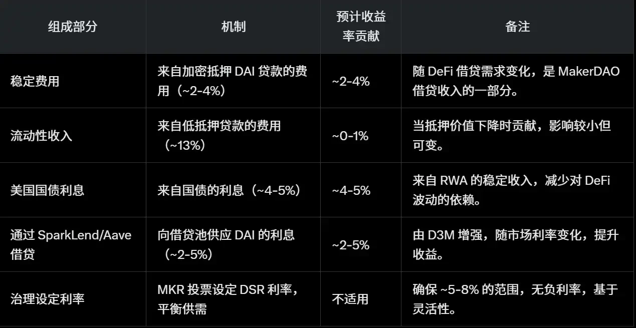 → 策略:来自多种来源的 DSR(Dai 储蓄利率)收益