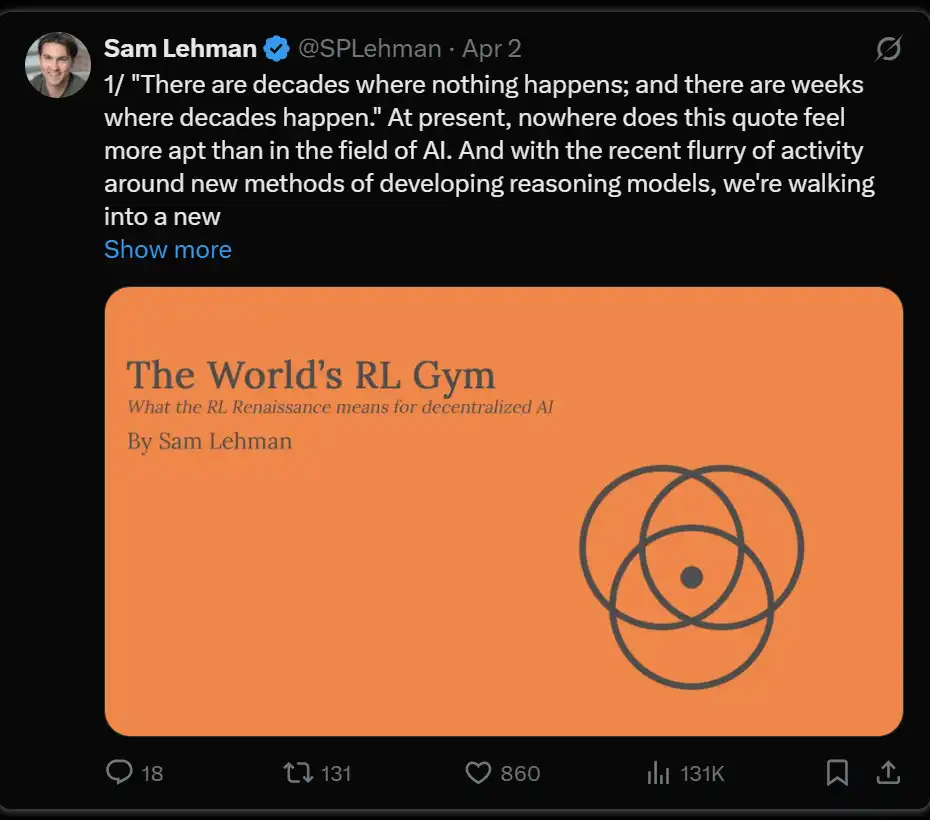 接下来是研究方面,一篇关于 AI 强化学习的有趣论文: