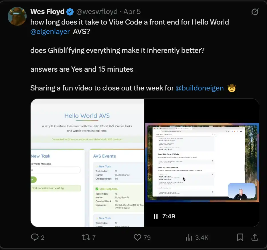 AI X Vibe 在 EigenLayer 上进行编码: