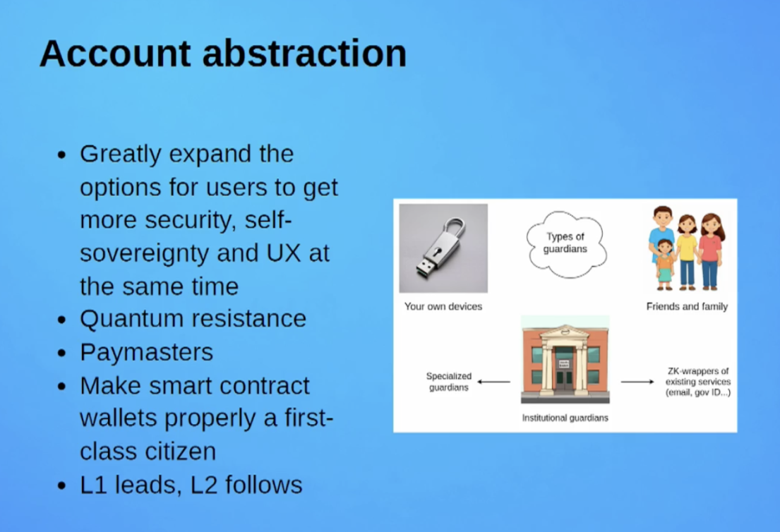 此外,通过社交恢复(Social Recovery)和 Guardians 等技术,以太坊还将提供更为去中心化的身份验证与资产控制方案。