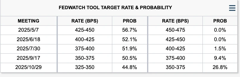 关税出台后,风险资产大幅下跌,风险市场开始对未来的衰退风险进行计价,目前的全年降息次数已经来到了 4 次。