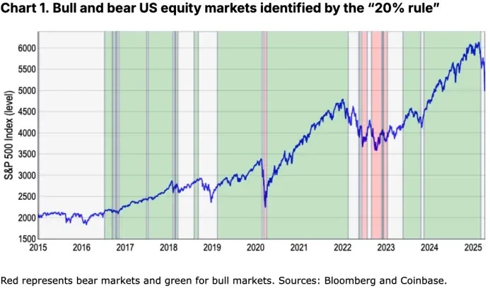 需要指出的是,传统上用于界定牛市与熊市的“ 20% 规则”本质上只是一个经验法则,至今并无统一标准。正如美国最高法院大法官波特·斯图尔特在评论“什么是淫秽”时所说的:“我无法定义它,但我看到就知道。”同理,市场趋势的识别往往更依赖经验与直觉,而非严格的计算模型。