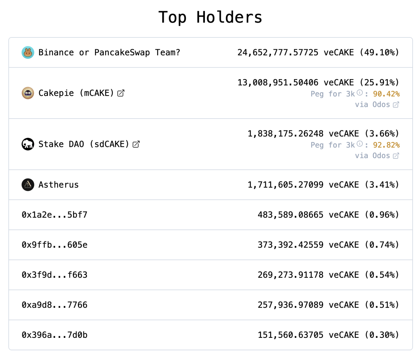 提案的争议不仅体现在经济模型调整上,更在于链上操作和治理过程中出现的异常。根据多方链上数据监控,在提案正式讨论前后,有与币安或 PancakeSwap 关联的多个大额地址突然锁定了大量 CAKE 代币(2500 万枚,占总的 CAKE 锁仓量近 50 %)。这些地址在提案结束后可立即解锁,从而利用低成本操作迅速夺回治理权并重新配置激励机制。