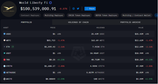 NFT只是一个开始,既是为赚取政治献金也是为了号召拉票,2024年9月,特朗普家族宣布推出加密货币项目“世界自由金融”(World Liberty Financial)。这家以Defi为名的企业上市以来在Defi上未见过多起色,反而是持续不断的买币建仓惹人关注,目前持仓总额达到了10亿美元,亏损0.87%。更为直接的是治理代币的销售,在明确代币不会二级转卖以及存在市场权益的背景下,今年3月,WLFI仍然宣布完成了5.5亿美元的WLFI治理代币销售,币圈OG孙宇晨也在其中贡献了7500万美元。