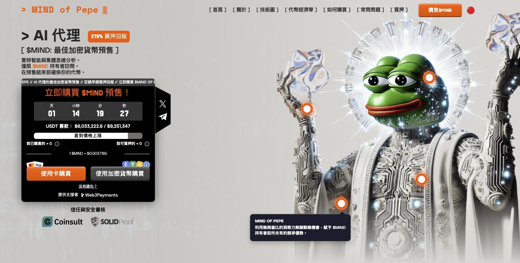 该平台设有创作者排行榜与社群投票治理系统,推动优质内容浮现,同时激励用户参与创作与消费。$MIND 预售已启动,支持多链钱包与法币卡支付,早期参与者可获得限量 NFT 角色与质押奖励。