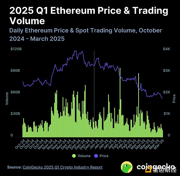 4. 以太坊价格在 2025 年第一季度从 3,336 美元暴跌至 1,805 美元,抹去了 2024 年的所有涨幅