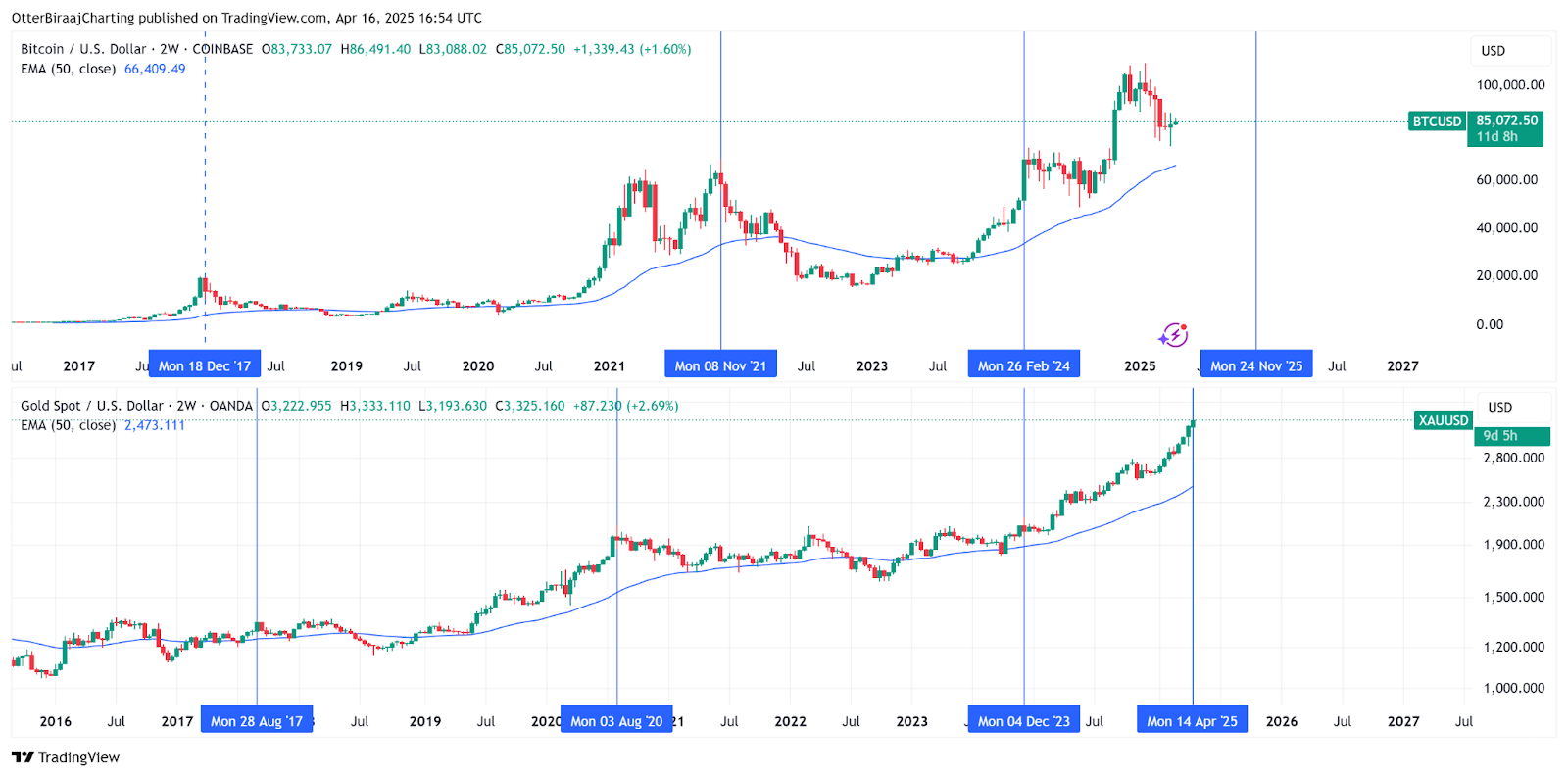 黄金3357美元后魔咒触发:历史数据揭秘比特币5个月内必破新高的加密定律