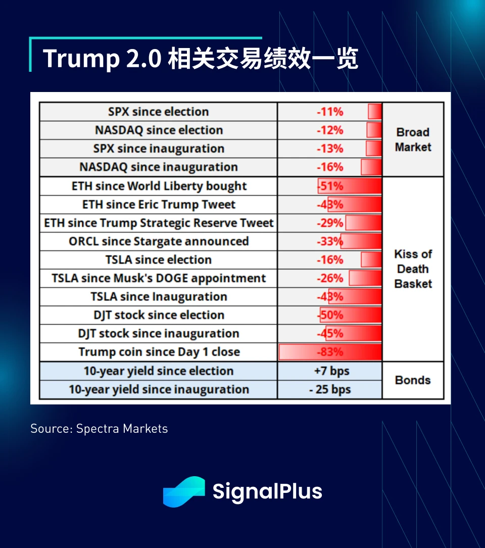 尽管市场一向习惯听从官员说法,但所谓的「Trump 2.0 交易」迄今为止堪称灾难,多数政策叙事最终都导致了显著的亏损。一张图胜过千言万语: