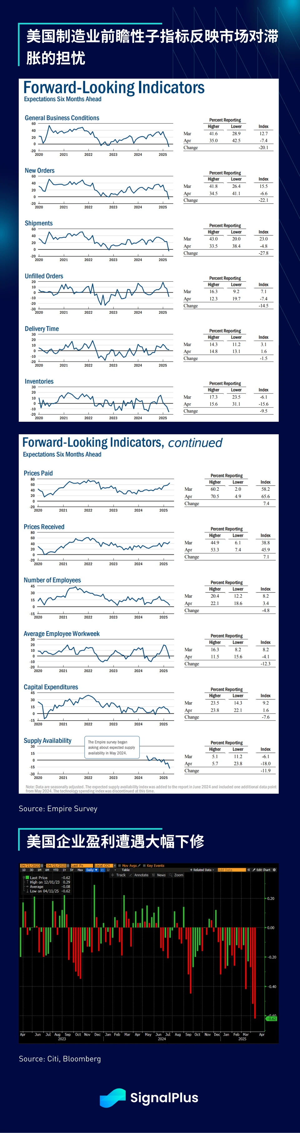 子指标也显示出类似的情况。前瞻性的出货与资本支出指标大幅下滑,而支付价格则明显上升。与此同时,企业盈利也持续遭到下修,盈利增长遭遇压缩,为股市蒙上了一层阴影。