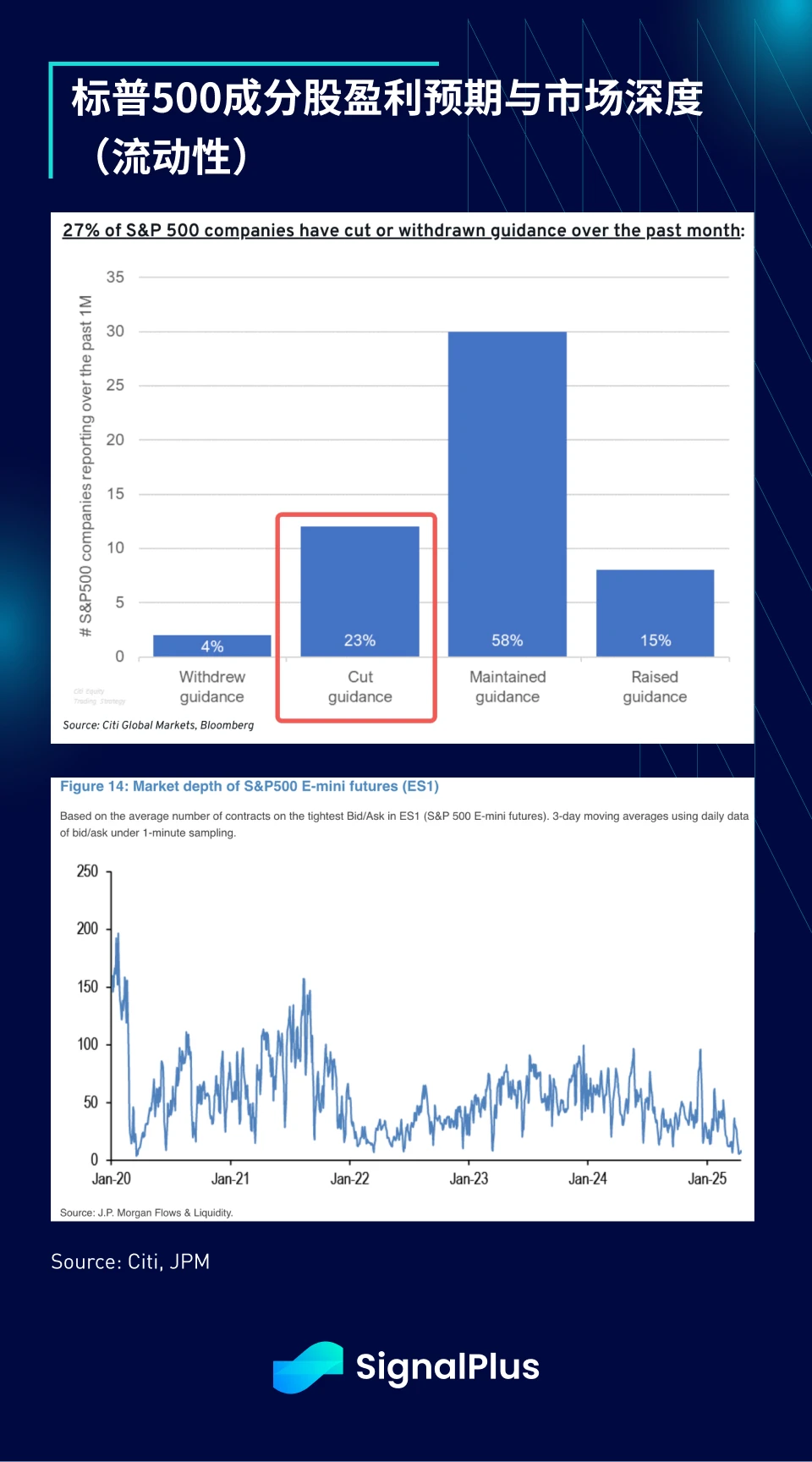在散户加码之际,相当一部分企业已下调盈利预期,SPX 指数的市场深度(流动性)已接近历史低点
