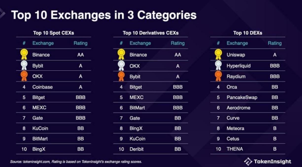 Bybit近年来迅速崛起,2024年以11.5%的现货交易份额位居第二。 其增长得益于新代币上市、低费用策略以及FTX崩盘后的市场机会。此外,Bybit还与Solana、TON、Sui等区块链项目建立了战略合作,推动了Web3生态的发展。