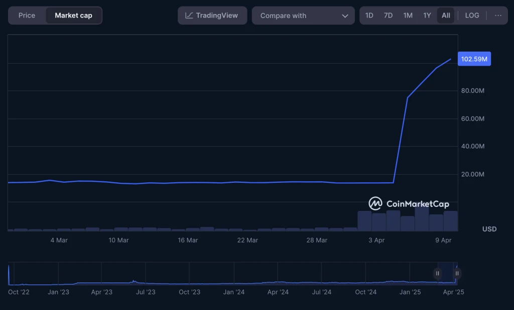 我们采用数据驱动的方式来筛选这些市值黑马。团队回溯 2025 年 3 月 2 日至 4 月 6 日期间,从 CoinMarketCap 等聚合平台调取的市值快照,重点关注代码一致、无频繁更名且初始市值不过低的项目,以避免百分比失真。最终名单锁定在「高增幅 × 充足流动性 × 社区活跃度高」三者兼具的代币。