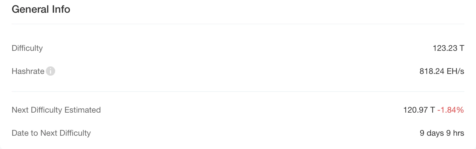比特币网络在 2025 年 4 月 19 日 17: 13: 37 (区块高度 893, 088)完成了最新一轮难度调整,其难度上调 1.42% ,达到 123.23 T,再度刷新历史峰值。截至 2025 年 4 月 25 日撰稿时,全网算力为 818.24 EH/s,而当前全网挖矿难度为 123.23 T。预计下一轮难度调整将在 5 月 4 日进行,预期下调幅度约为 1.84% ,将使难度降至 120.97 T。此趋势表明,随着网络算力的增加和挖矿效率的提高,比特币的挖矿难度将继续保持波动调整,矿工的参与度和市场的算力分布可能会发生变化。