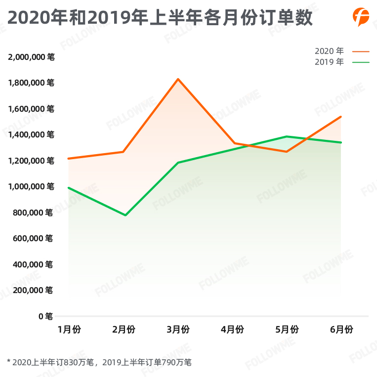 2020上半年,FOLLOWME 交易社区1月至6月每月订单数均超过120万笔,共计830万笔,比2019年同期增长了17.1%。值得注意的是,3月份发生的黄金闪崩行情,使得黄金价格出现巨大波幅,订单数同比2019年3月份上升56%,说明交易者在黑天鹅事件事件中更多的选择是参与,而不是回避。