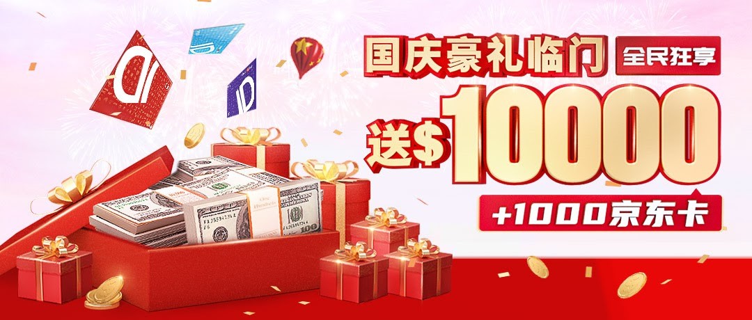 如今国庆佳节将至,金九银十翻仓旺季已到来,领峰特别送上$10000赠金,加1000元京东购物卡福利,再叠加最高$26/手点差回赠,超值礼遇,新老客户人人可享,全力助阵投资者在大行情中揽收盈利,实现财富飞升!