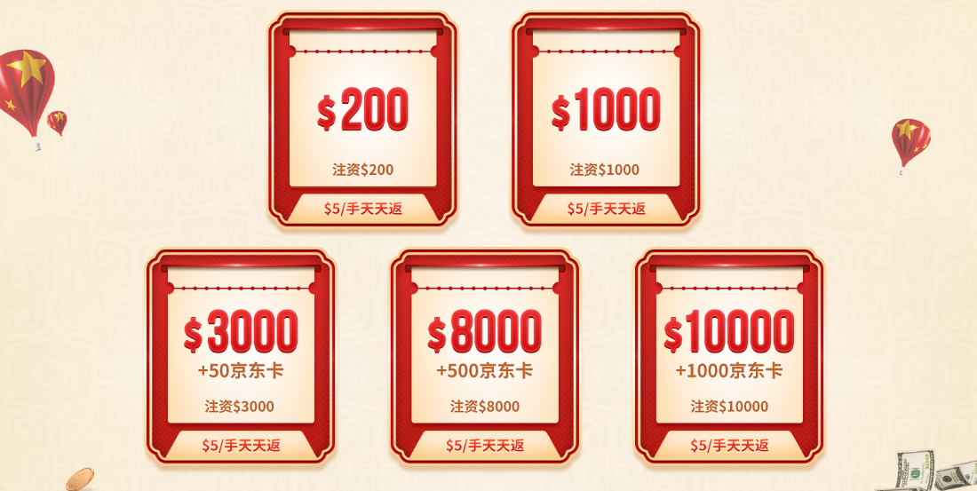 3.申请成功后,京东卡立即到账,赠金按5美元/手每天发放。