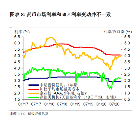市场利率和贷款利率处于分化中,使得了解实际的货币状况更为复杂。过去几年中,7天回购利率等短期市场利率有时并不与MLF利率的变化同步,这可能会使市场对央行的政策意图产生疑惑。