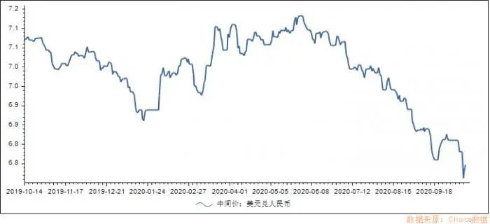 (图为2019年10月中旬至2020年9月18美元兑人民币走势)