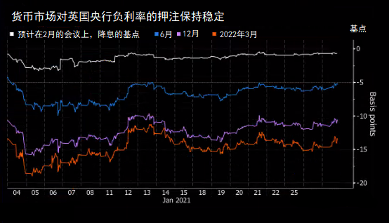 英格兰银行将于2月4日做出货币政策决定,同时发布季度预测。上周接受调查的大多数经济学家预测,到2023年年中,关键利率将保持或高于目前的0.1%水平。只有一家接受调查的银行预计利率将保持在零以下。