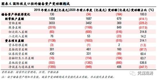 前述两个口径的外汇收支数据是高频的月度数据,国际收支则是低频的季度数据。最快的国际收支初步数据也要季后近一个半月时间才对外发布,故现在还没有2020年全年哪怕是初步的国际收支数据,而只有前三季度的正式数据。下面,我们就根据前三季度国际收支数据进行分析。国际收支统计包括流量统计(国际收支平衡表)和存量统计(国际投资头寸表),本文仅讨论国际收支平衡表。