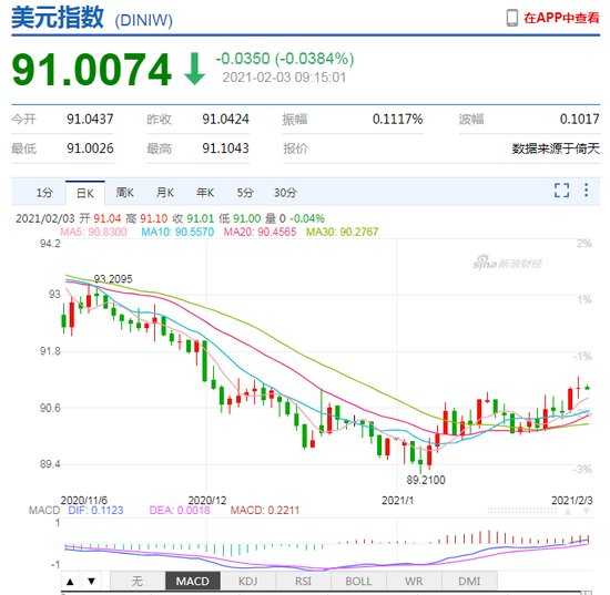 2月3日,美元指数站稳91关口,人民币中间价报6.4669,上调67点,上一交易日中间价报6.4736,在岸人民币上一交易日收报6.4597。