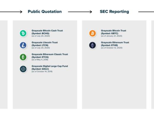 虽然目前只有GBTC和ETHE是SEC报告公司,但灰度对所有现有产品采用相同的商业模式(如下图):发起私募、在二级市场获得公开报价、成为SEC报告公司、转换成ETF。