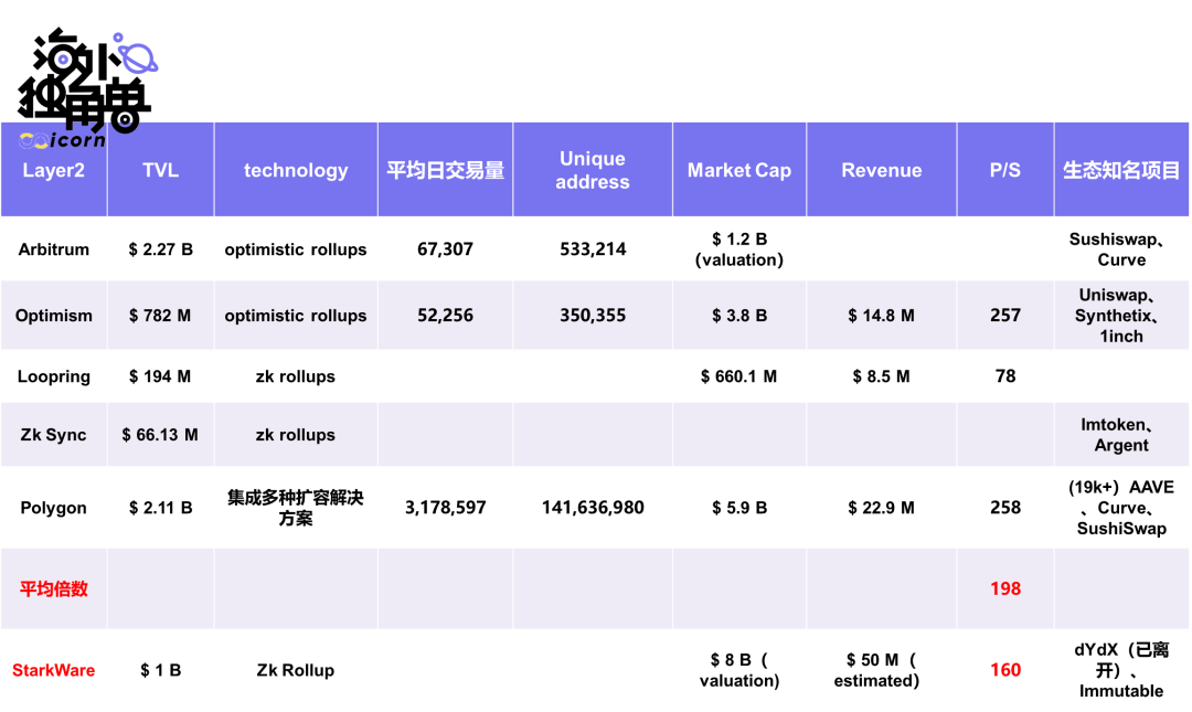 尽管我们仍然相信 zkRollup 是区块链扩容最终胜出的技术路线,但当下 StarkWare 80 亿美元的估值显得太高,我们认为在这个高赔率的赛道,应在早期布局。