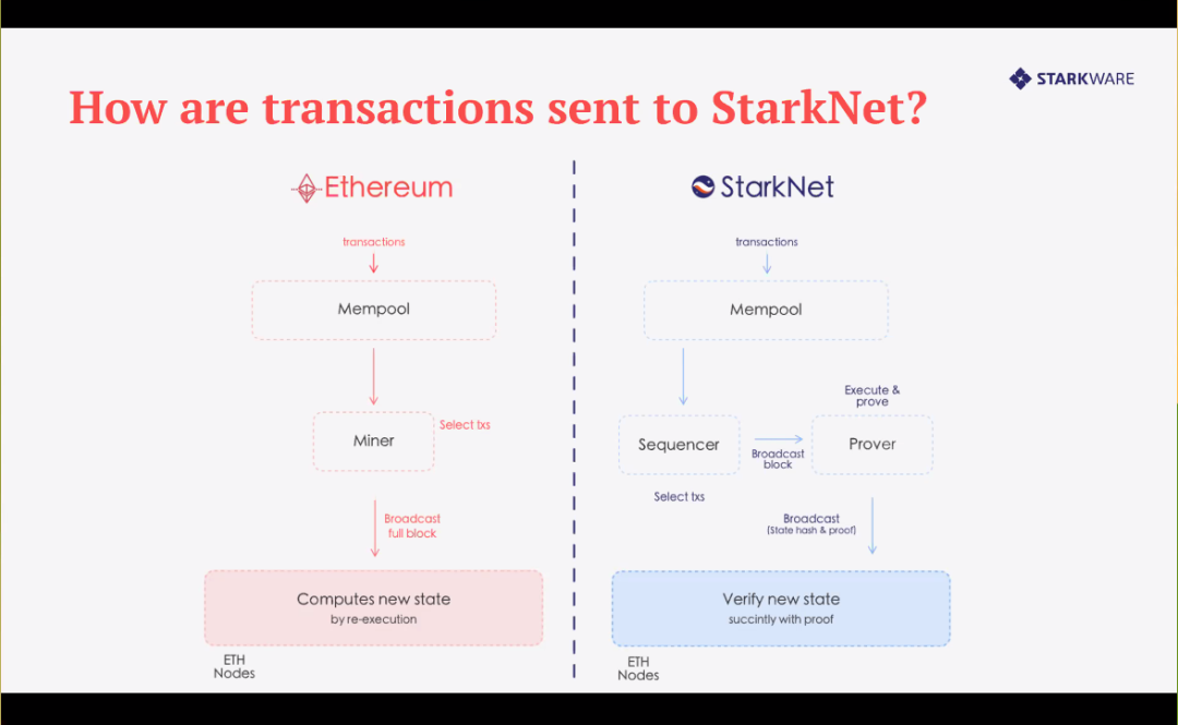 StarkWare 联合创始人 Eli Sabasson 曾将 StarkEx 和 StarkNet 的区别比作为计算机和云的区别,购买 StarkEx 就像拥有自己的定制化计算机,每个客户都拥有自己的扩容计算机,并且只有该客户可以使用自己的计算机。而 StarkNet 更接近以太坊本身,每个人都可以自主在网络上部署合约。