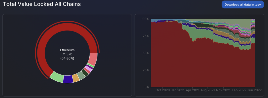尽管如此,以太坊依旧占有全部 Layer1 网络 64.86% 的 TVL,比起排名第二的 BSC(7.78%)、第三的 Tron(5.68%)、第四的 Solana(3.56%),以太坊以其突出的安全性和去中心化,将长期保持绝对碾压级的第一名优势。