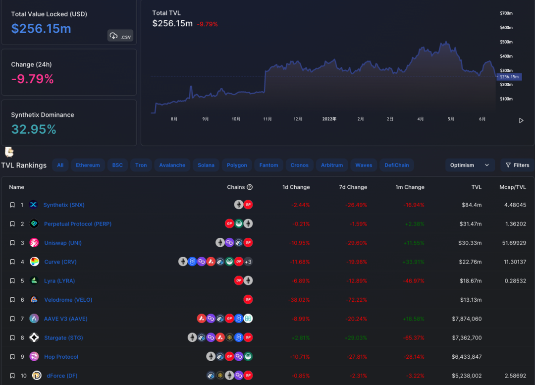 Arbitrum 由 Offchain Labs 开发,创始团队包括普林斯顿大学计算机专业的资深教授 Ed Felten,目前估值 12 亿美元,投资方包括 Lightspeed、Polychain、Pantera 等。生态目前总锁仓量达 10.6 亿美元,占 Layer2 总锁仓量的 53.54%,是市场份额最大的 Layer2。其中有 5 个项目锁仓量达到 1 亿美元以上,包括 SushiSwap、GMX、Curve、dForce、Stargate、Uniswap、AAVE 等。