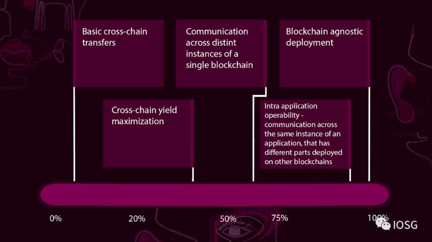 50-75%:类似Aave这样的项目,使得用户能够在一条链上存入抵押品,同时在另一条链上进行借贷。即实现不同链的应用间通信;