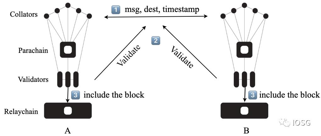特别地,XCMP的安全性属于Shared Security,依赖于中继链提供的全局安全性,因为跨链消息的验证是由Validators完成的,随后Validators把包含该消息的区块包含到中继链上。