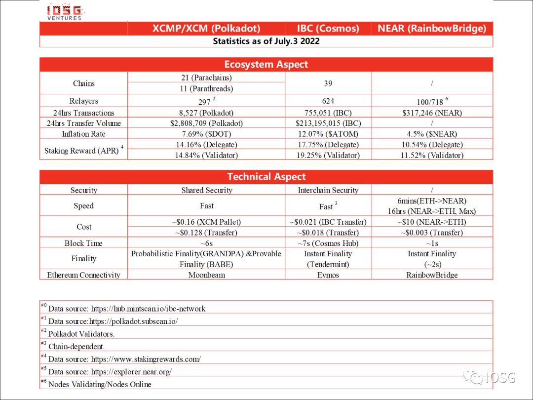 作为小结,在上表中对XCMP/XCM、Cosmos IBC和NEAR RainbowBridge进行了简要的对比,其中一些数据可能直接涉及到生态间的对比。(RainbowBridge仅仅涉及到NEAR与以太坊的跨链,不像前两者属于跨链生态,但作为轻客户端的一种,我们同样放在这里做个对比。)注:以上/下案例项目均为IOSG Portfolio,举例仅供信息交流,不构成投资建议。个人投资决策请DYOR!