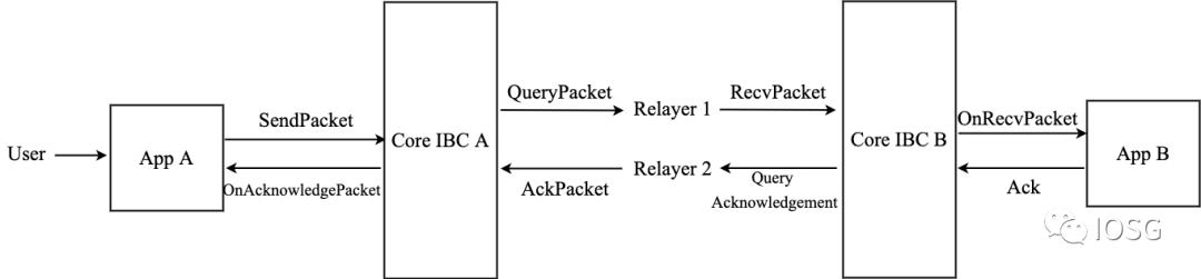 类比于互联网通信协议TCP/IP的层级体系,IBC可分解为传输层和应用层。传输层提供必要的基础设施以在链间建立安全连接和验证数据包;应用层准确定义了这些数据包应该如何被发送方打包、以及如何被接收方解释。