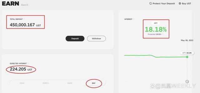 而另一个吸引了无数投资者的项目,便是Terra项目方推出的一个名为Anchor的项目,这个项目相当于一个提供UST存贷款业务的银行。它会为存款者提供高达20%的年化利率,吸引了众多投资者购入UST存入Anchor项目,吃高额的利息。今年25岁的赏金猎人便是其中之一。2021年底,加密货币市场转熊,他存入了8万美元的UST,为的是赚取高额利润。在他看来,把钱存入Anchor是在熊市还能挣钱的不多的方式之一。