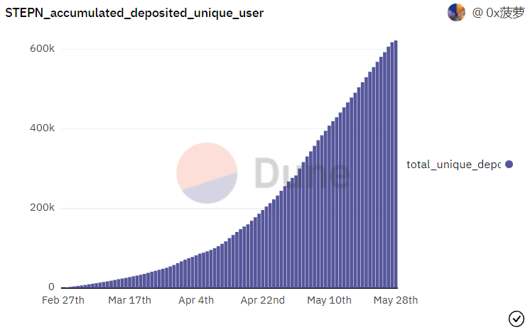 在红杉资本、币安和Alameda Research等加密风险投资领域的知名人士的支持下,该公司第一季度的利润为2000万美元 。截至5月底,StepN的累计用户量达到了62万。